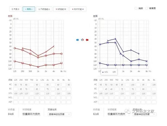 助聽器,是幫助聽力下降者的主要工具,也是非常有效的聽力輔助工具。聽力圖,為準確的描述個人聽力的狀況,所采用的形式表述。通過對聽損患者聽力圖的分析可以對耳部聽損進行定性、定量、定位診斷。純音聽力曲線主要是反映外耳、中耳及內耳的功能變化。