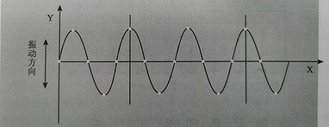 1.正弦波 音叉振動(dòng)產(chǎn)生出來的聲音是純音,只有疏波和密波在簡(jiǎn)單的交替進(jìn)行,而且只含有一個(gè)頻率信號(hào)。一個(gè)完整的純音包括一個(gè)疏波和一個(gè)密波,可用正弦波圖表示。橫軸表示時(shí)間,縱軸表示聲波的強(qiáng)度。音叉振動(dòng)的幅度與所用的力成正比,用的力越大,音叉振動(dòng)的幅度就越大。
