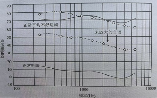 正常耳動態(tài)范圍一般為110 dB ,傳導(dǎo)性聽力下降動態(tài)范圍整體上移,一般聽力計有時很難測到傳導(dǎo)性聽障者的不適閾;感音神經(jīng)性聽力下降動態(tài)范圍縮小;正常耳的 SDT 很難測到,因為通常為0 dB HL 。動態(tài)范圍為50 dB 的受試者聽錄音機(jī)里放出來的聲音沒有問題,因為錄音的動態(tài)范圍一般在35dB,且音量合適,但這種人聽現(xiàn)場音樂會就會有麻煩,現(xiàn)場音樂會中聲音的動態(tài)范圍通常在70dB以上,如果坐在后面,小聲會聽不到,坐在前面,則大聲又會難以忍受,即聽覺重振。
