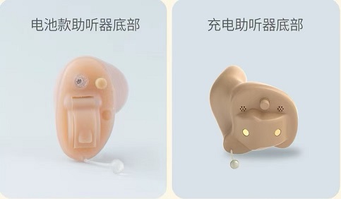 電池款,助聽器更換電池時,需撕開電池貼紙,靜置后,將電池放入電池倉,再閉合電池倉們,同時需注意電池正反面,操略顯繁瑣,對于手腳不便的老人或小孩稍有困難。