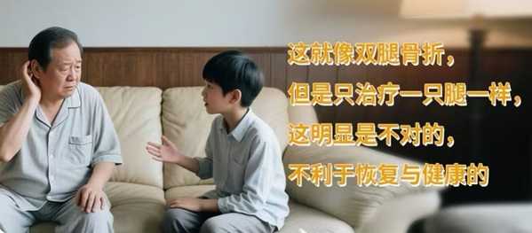 雙耳聽覺系統本是協同工作的,聽損后,長期僅單側佩戴助聽器,未助聽一側則會因缺乏持續、有效的聲音刺激,大腦聽覺中樞會逐漸弱化對該側信號的處理——醫學上稱為“聽覺剝奪效應”。