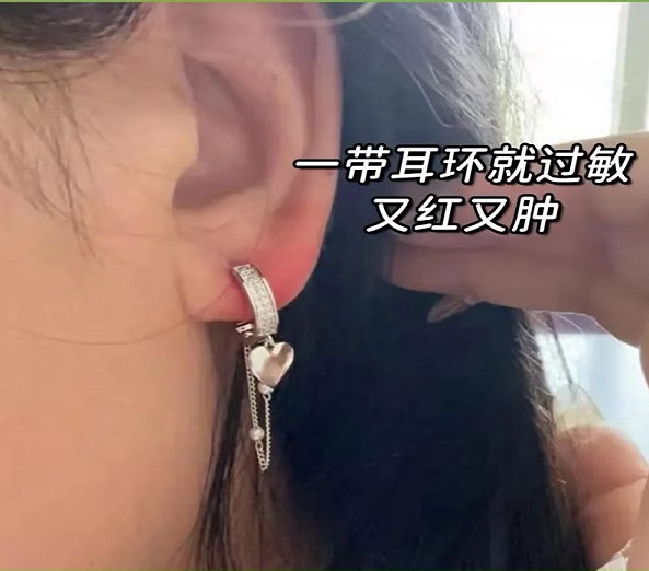佩戴含鎳或其他致敏金屬的耳飾可能引發接觸性皮炎。典型癥狀包括耳垂瘙癢、脫屑、滲出液,長期接觸過敏原可能導致慢性濕疹。
